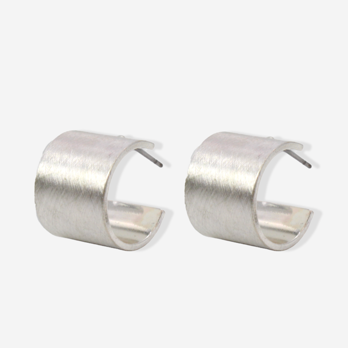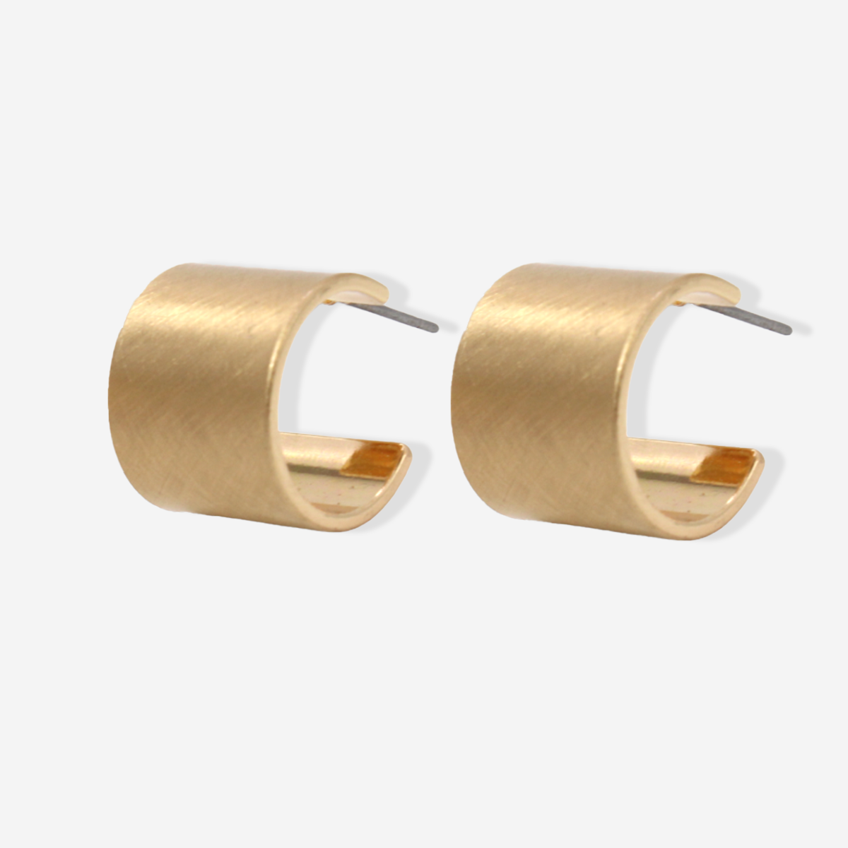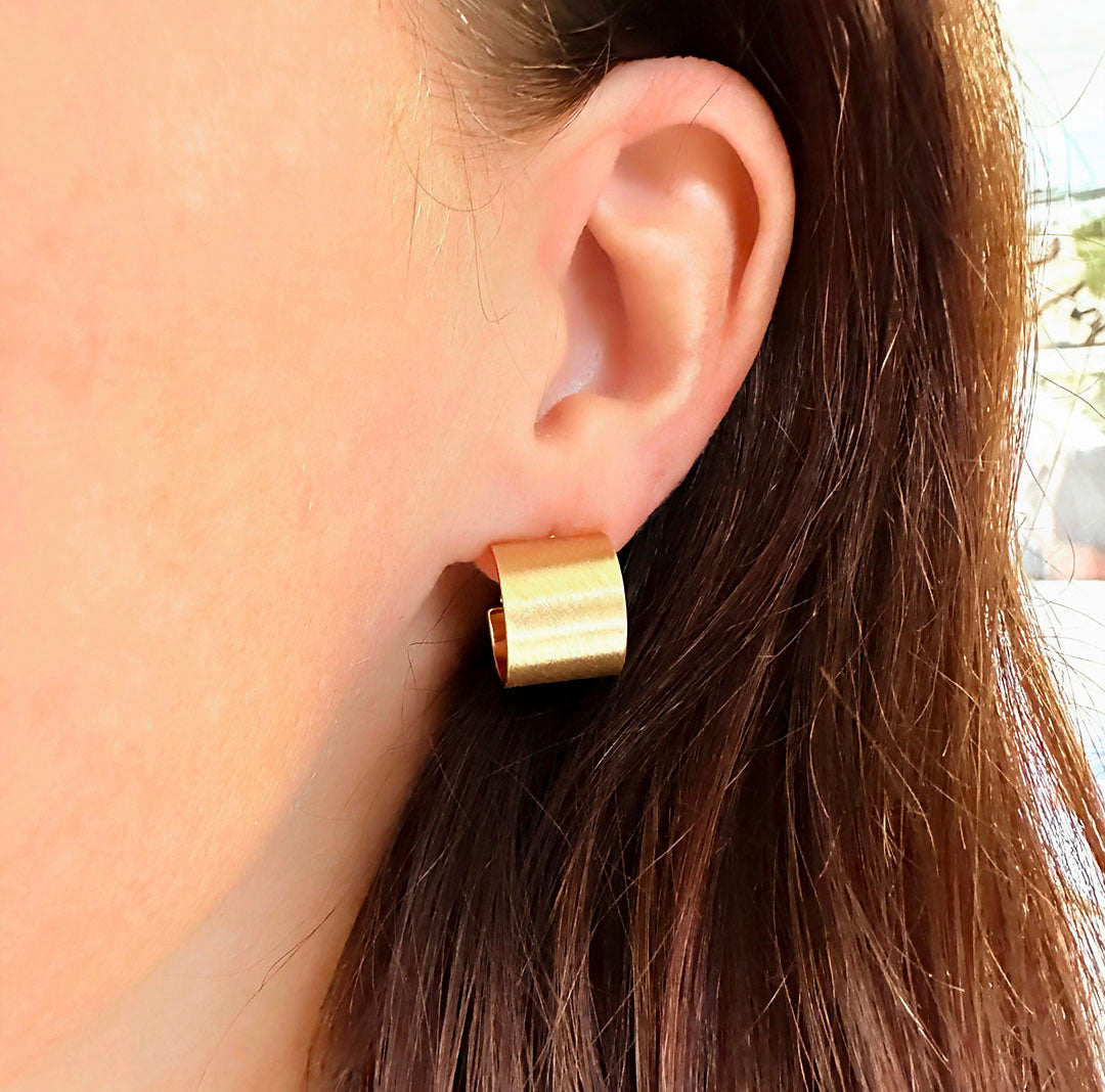Wide small hoops are available in gold or silver matte finish.