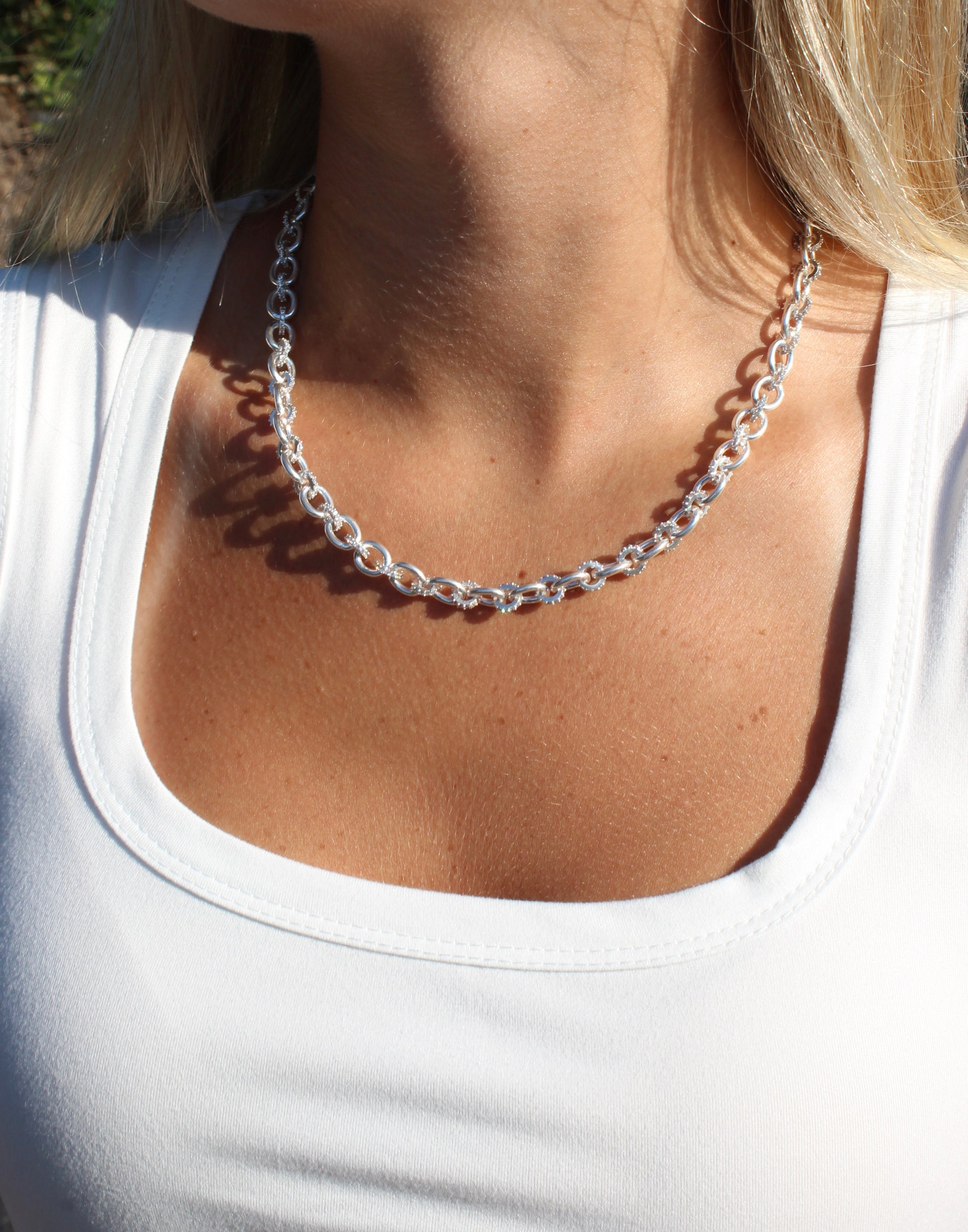 Boost your stack and make your neck sparkle with this must-have layering piece! This oval link chain, adorned with paves, is perfect for those who love to take risks and add a touch of boldness to their style.