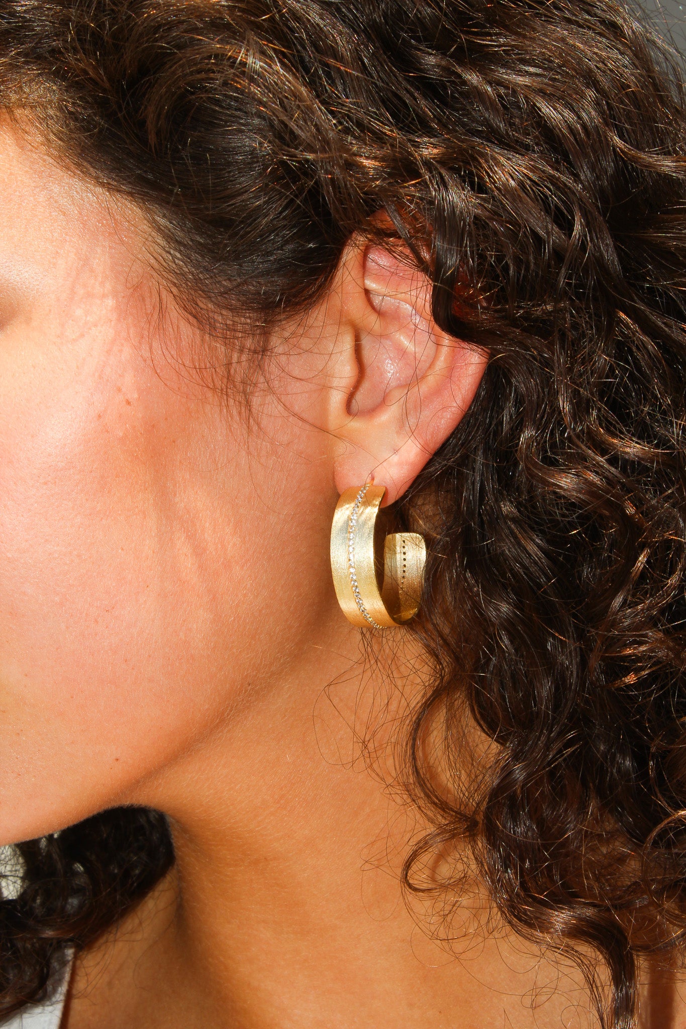 Our best-selling hoops are back and better. Featuring a row of sparkling pave these are a perfect pair of basic hoops with a touch of sparkle.