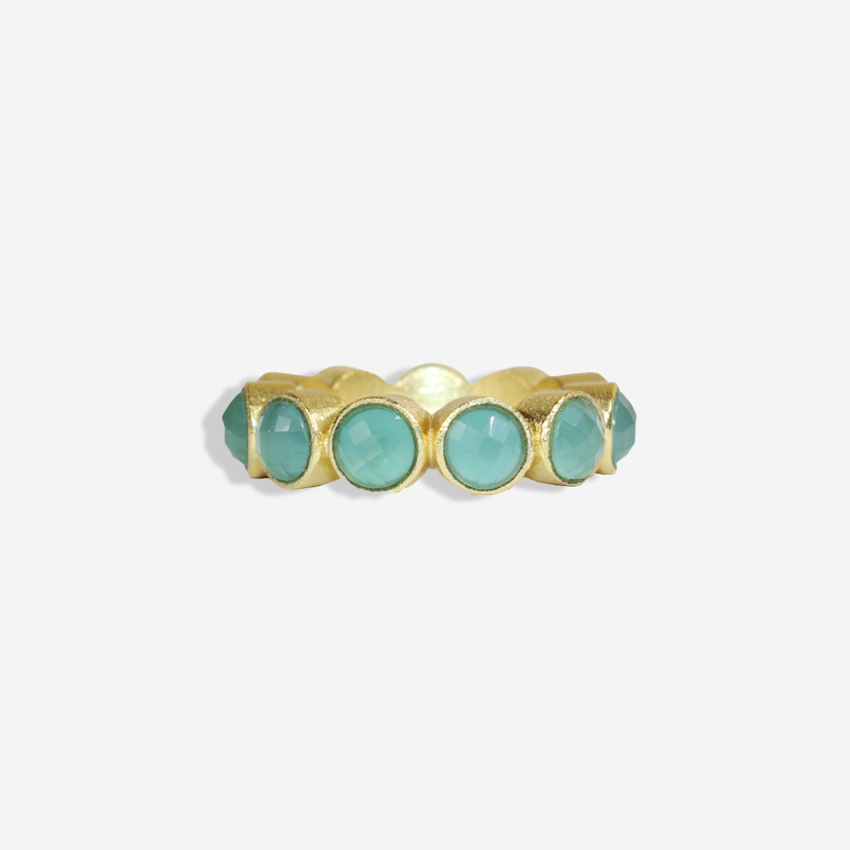 This stunning ring features a unique Peru chalcedony color circle stone shaped band. Embrace the beauty of this handcrafted ring and make a statement with its vibrant color and flawless design.