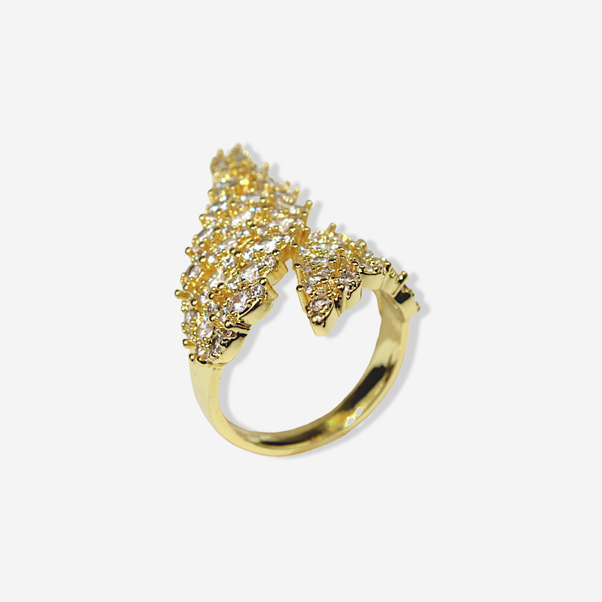 Make a STATEMENT! This wing-shaped pave ring adds an edgy touch to any ensemble. Its glamorous design will have heads turning. (This ring will give your outfit that extra oomph it needs!)