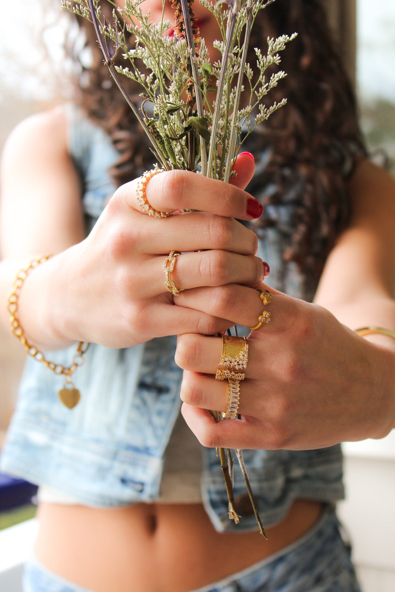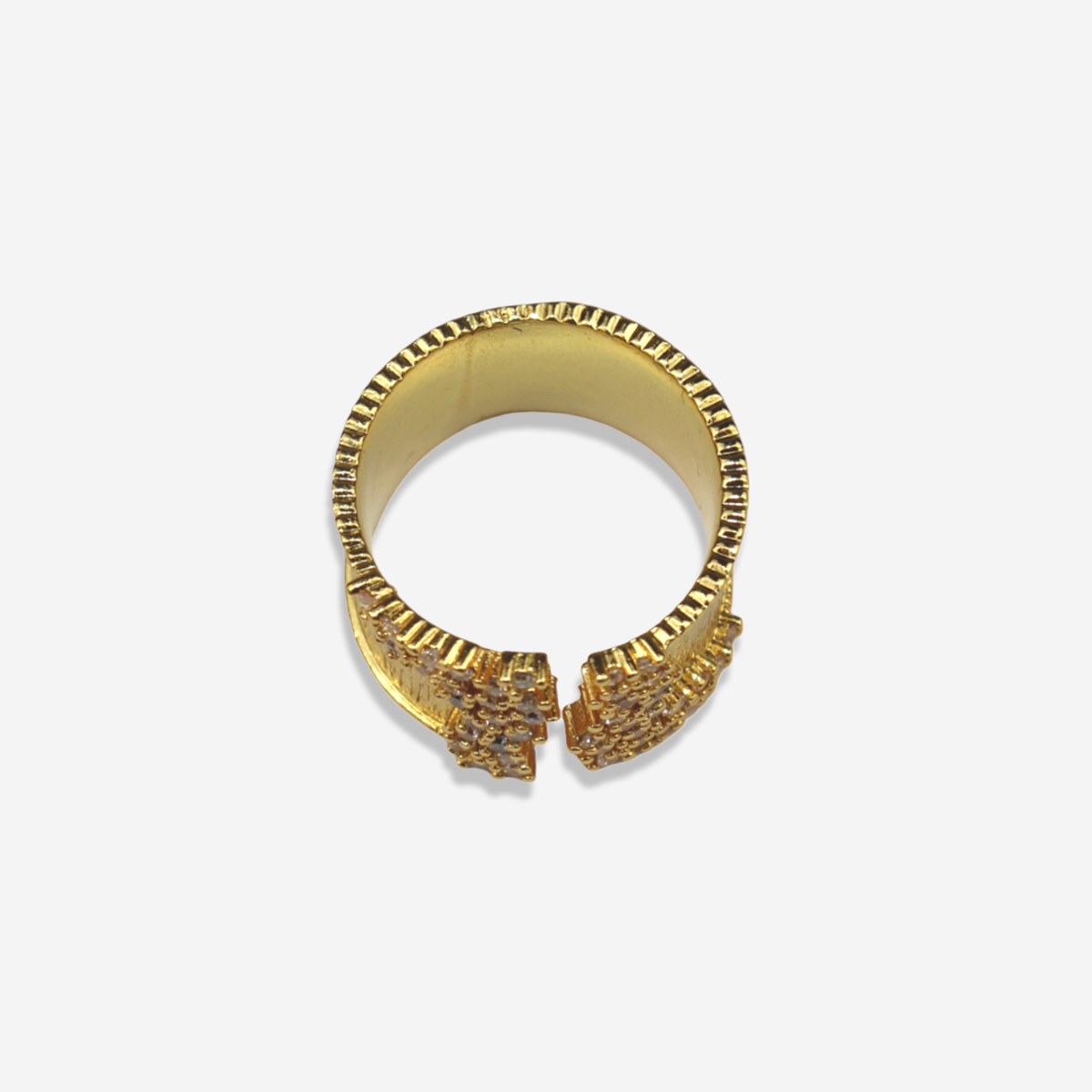 A scattered pave, stackable ring that's both elegant and edgy. Glamorously elevate your style with this versatile piece. It's perfect for stacking or standing on its own.